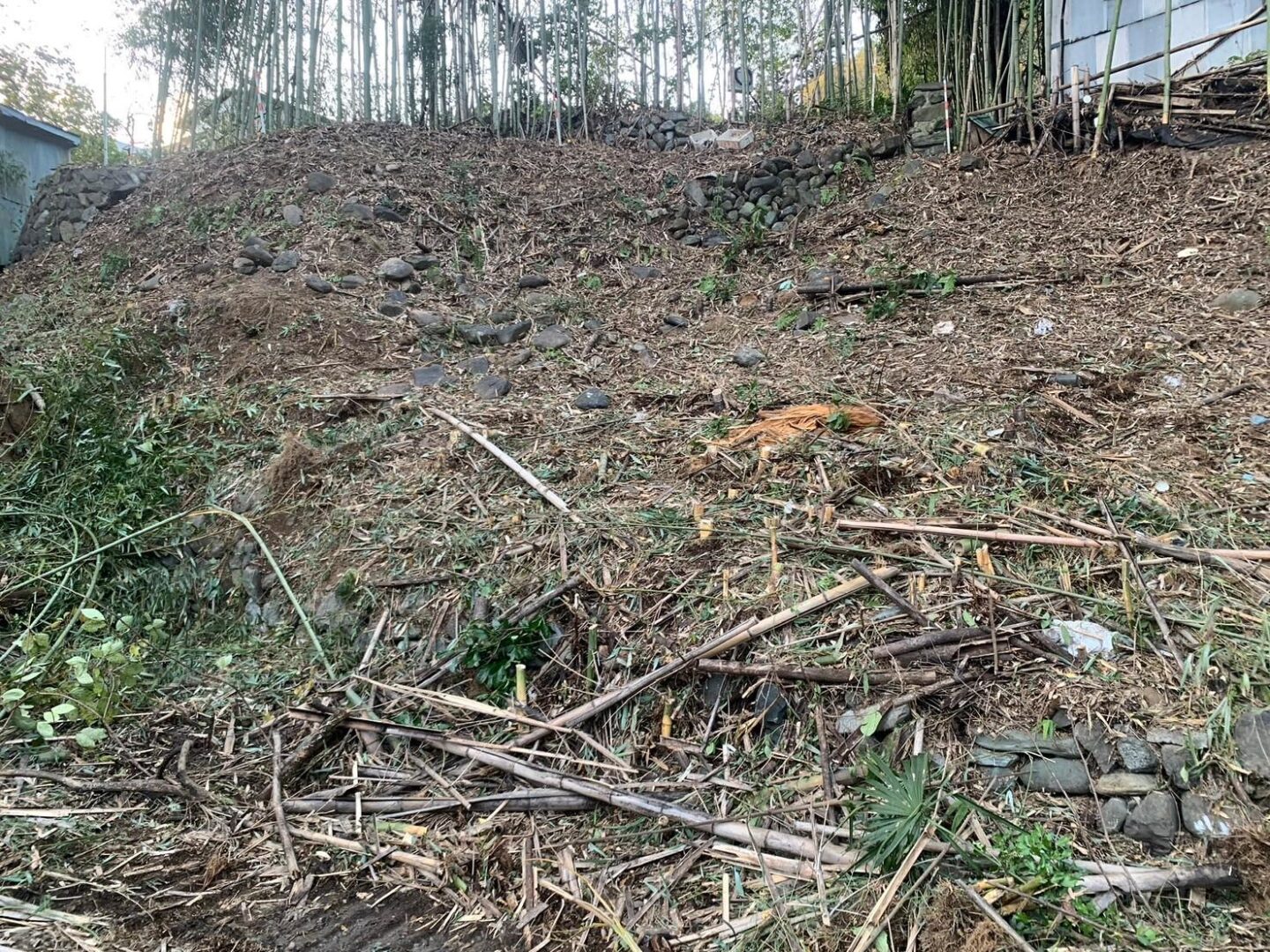 竹を根元から伐採し、倒れないよう枝や草を整理しました。