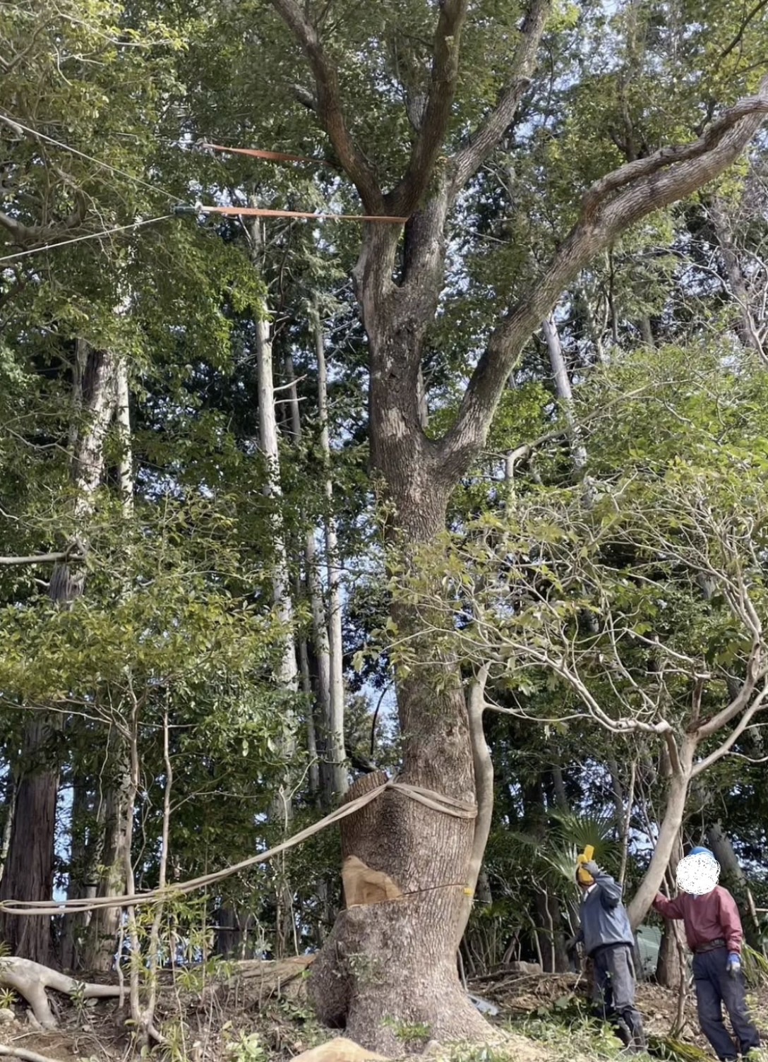 中でも、ご依頼いただいた木は幹も太く斜めに生えていて危険な状態。